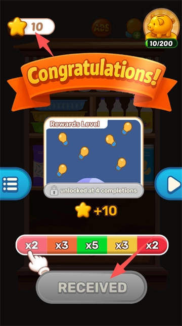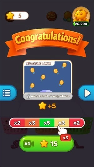 2.通关后记得点击领取星星时注意滑动条上的倍数