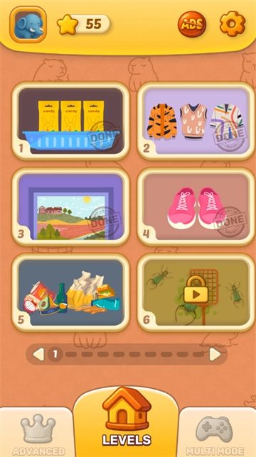 3、把所有物品都摆放整齐就能通关,通关后会得到星星奖励。