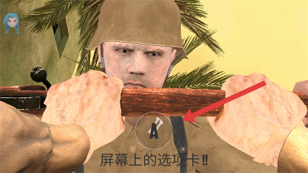 到达指定位置触发剧情后,持续点击箭头指向的【A】键,把敌方士兵推开。