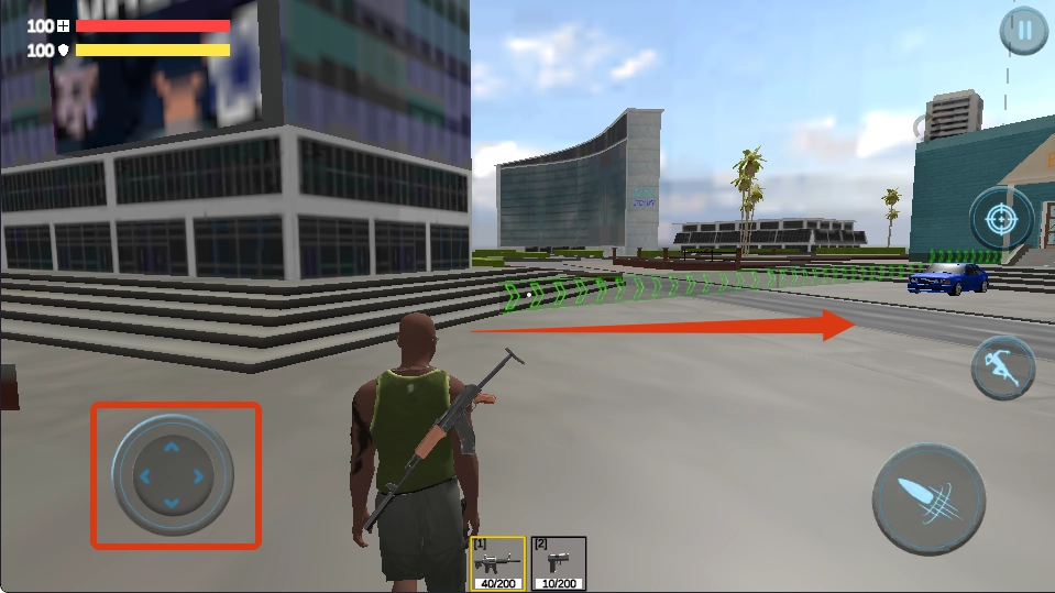 可以通过左侧的虚拟摇杆来操控角色的移动,你只需向左滑动屏幕,就能让角色前往任务目标所在的地点。