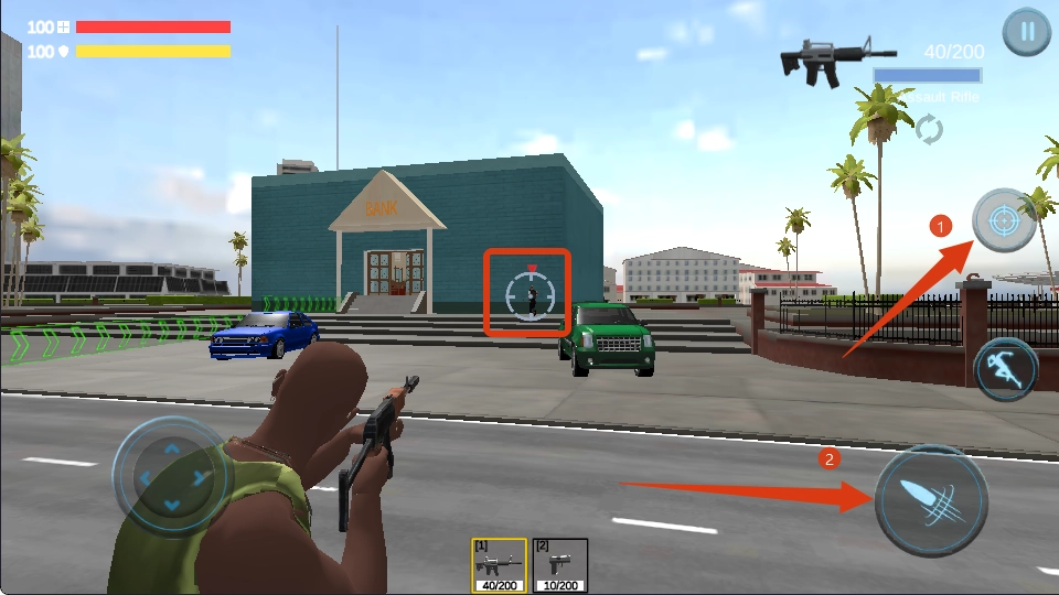 点击右侧的瞄准按钮锁定敌人,接着点击攻击按钮向敌人发起攻击,直至消灭目标。