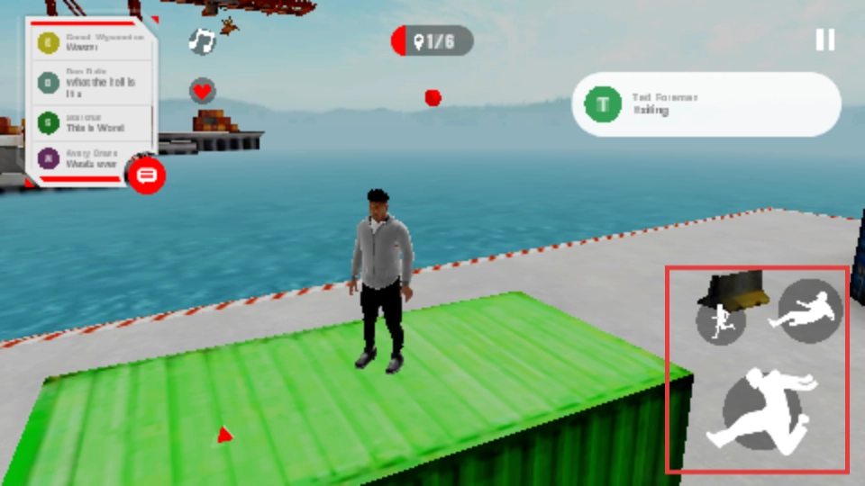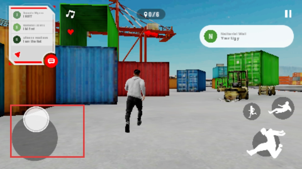 借助右侧的动作按钮,完成跳跃、滑行等操作,跨越集装箱之类的障碍物。