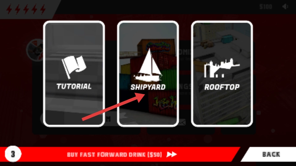 请选择【SHIPYARD】场景,随后进入此关卡开启游戏。