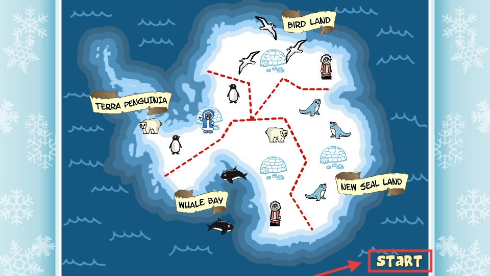 点击【START】开启企鹅餐厅的经营之旅,你可以规划餐厅的发展路线,探索不同区域的经营潜力。