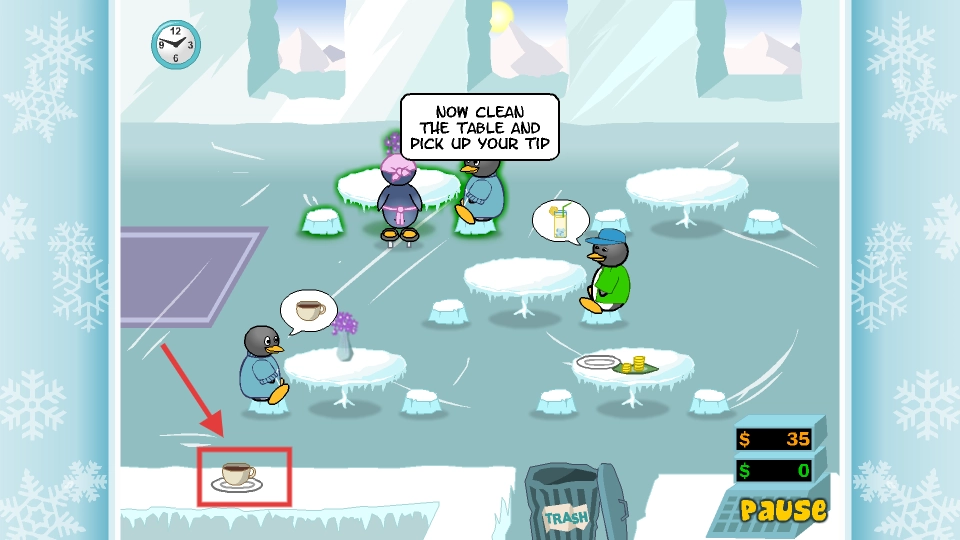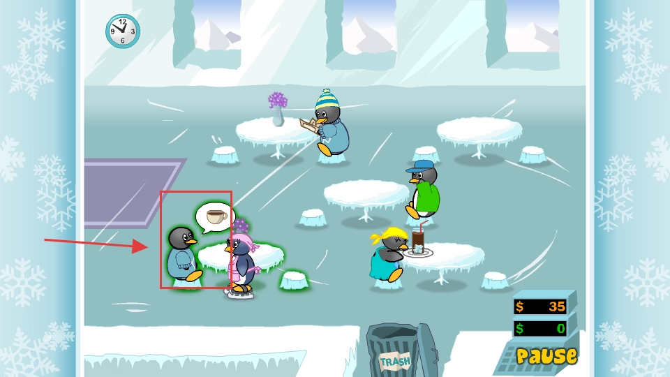 留意顾客的点餐需求,就像这位点了【咖啡】的企鹅顾客一样,第一时间为其送上所需餐品,以此提高顾客的满意程度。