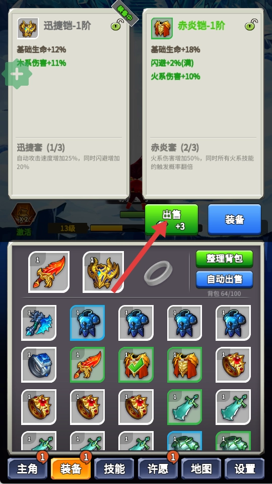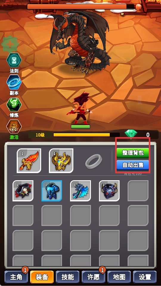 整理背包,自动卖掉没用的装备,优化背包空间,让获取和装备新物品更方便。