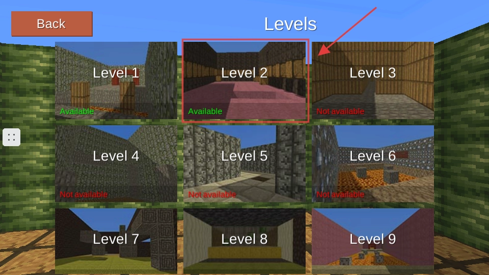 在关卡选择界面,找到标注着【Available】的【Level】-【2】,点击它就能进入该关卡对应的跑酷场景。