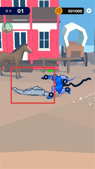 击败红色角色后,它会变成石像状态,这时能得到金币(比如【501000】),从而推动关卡进度。