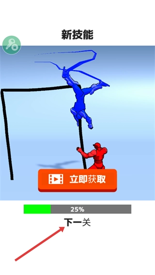 通关之后会弹出【新技能】界面,此时可以点击【下一关】按钮进入下一个关卡,继续进行格斗挑战。