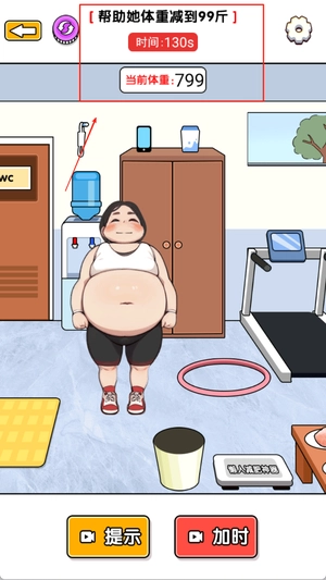 3、达成每关设定的减重目标就能通关,不同阶段有着不一样的体重要求和时间限制,需要合理规划应对。