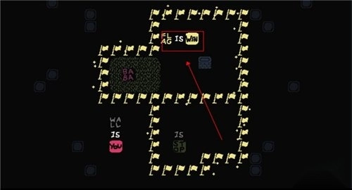 4、调整过关条件,例如将其设置为“rock is win”,这样玩家就无需再关注旗子,直接接触石头就能完成关卡。