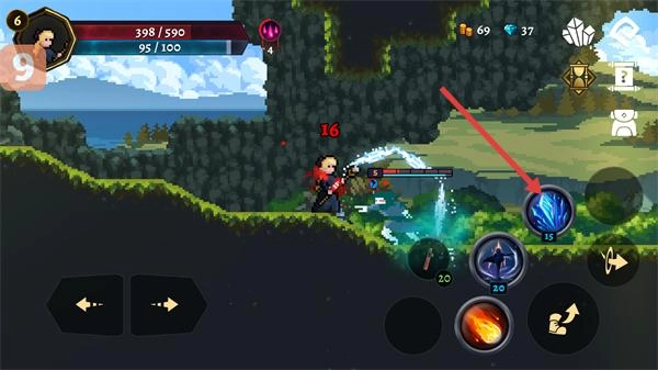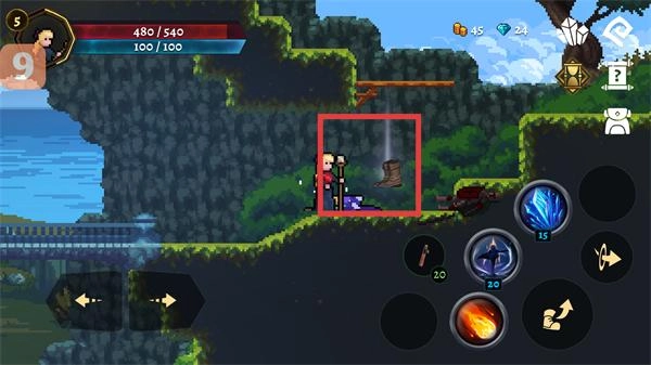 击败敌人后,收集场景里的【靴子】道具,这时自身的血量会变成【480/540】,接着继续推进关卡。