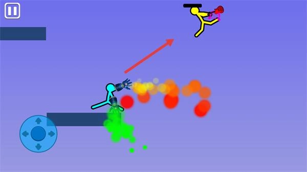 可以用左侧的蓝色方向键来操控蓝色火柴人的移动,右侧的黄色功能键则用于释放攻击技能。