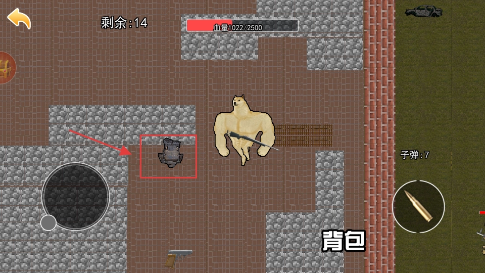 操控【小狗】靠近物资,拿到【黑鹰七套】后能强化装备,注意【子弹-7】和血量,战斗前把弹药补满。