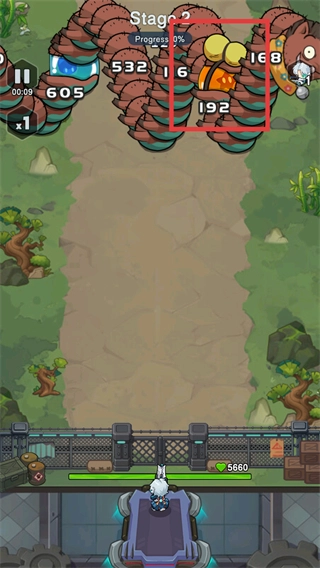 在【第二阶段】里持续对怪物发起攻击,触发【168】【192】这类数值的伤害,以此逐步推进当前处于【0%进度】状态的关卡进程。