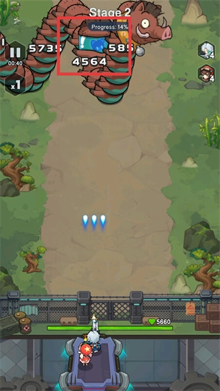 战斗过程中打出【4564】这样的高额伤害,能把【Progress】推进到【14%】,从而提高关卡进度的提升效率。