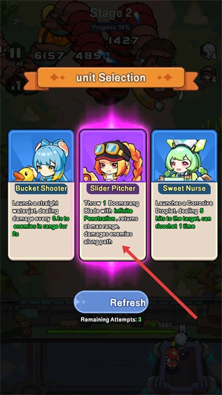 在单位选择界面时,建议优先考虑选择【SliderPitcher】,因为它具备的【Blow-Continuing】效果,能够对持续输出能力起到强化作用。