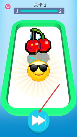 方块拼接完成后,呈现出【樱桃】样式的像素图案,达成该关卡的形状目标。
