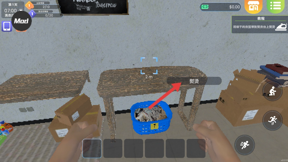 把熨斗移到红色区域来熨烫衬衫,这样就能完成衣物的熨烫工作了。