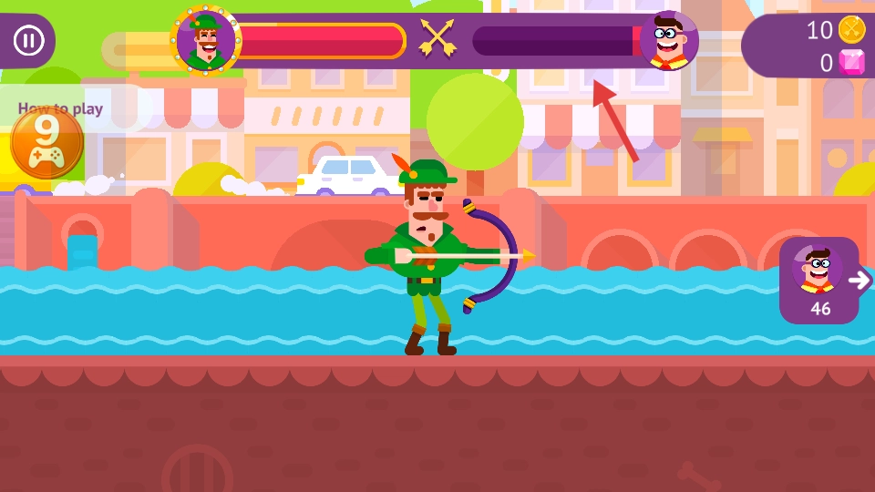 进入游戏,操控角色发射箭矢。