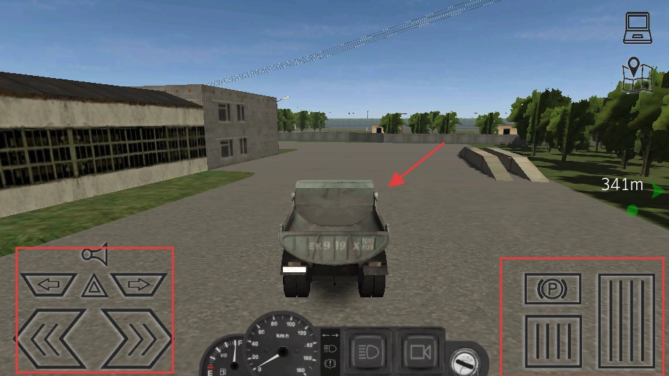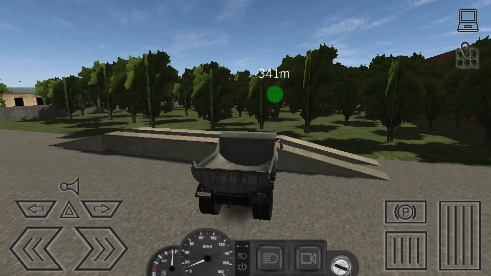 根据界面上绿色目标点的指引,驾驶卡车朝着目标位置行进。