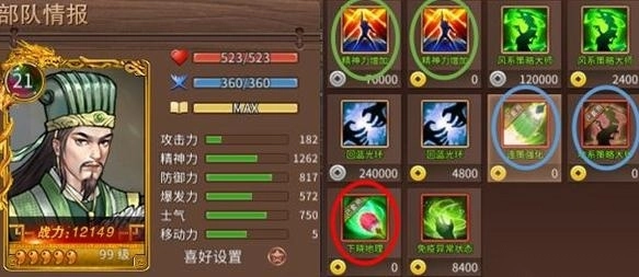 红方的智力、武力、统率、敏捷这几项属性,有金色资源就全部吃满;要是没有金色资源,先吃到111这个数值。