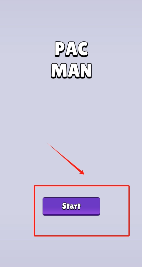 1、看到紫色背景上白色PAC MAN标题和红色箭头指着的紫色Start按钮,点这个按钮就能开始吃豆人游戏啦。