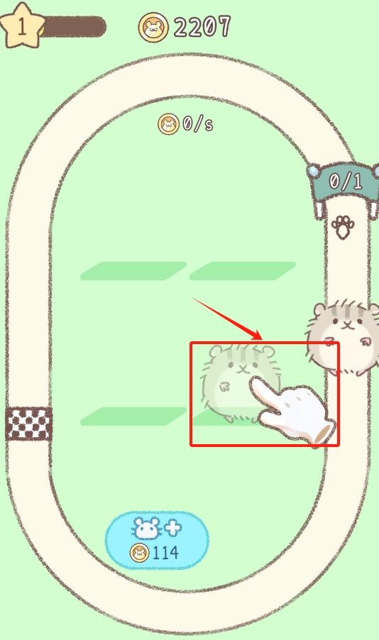 3、手指点击跑道上的小仓鼠,操控它跑动,争取更好成绩。