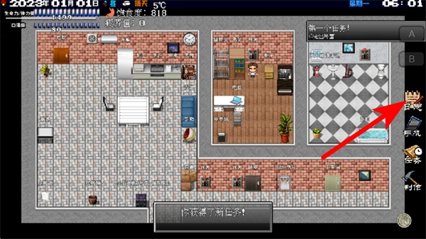 在场景界面里,顺着箭头所指的方向找到和任务相关的区域,这是获取新任务的基本操作,只要靠近对应的区域就能触发任务提示。