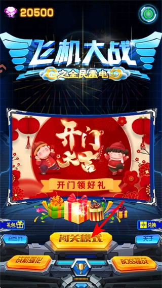 在游戏主界面点击闯关模式按钮,这是开启飞机大战关卡挑战的关键步骤,点击后将进入关卡选择环节,开启空战冒险的核心体验。
