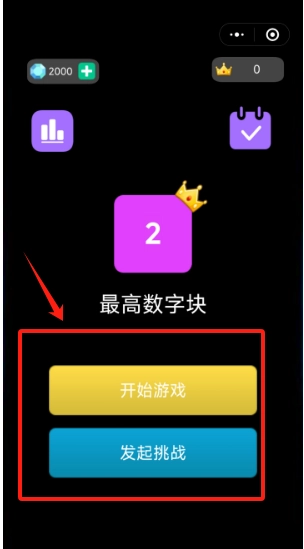 2、点黄色开始游戏按钮开玩,或点蓝色发起挑战按钮找人PK对战。