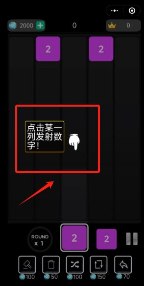 3、点击屏幕某一列发射数字块,让相同数字碰撞合并,争取更高分数。