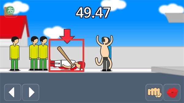 点击拳头图标,攻击持棒球棍的角色。