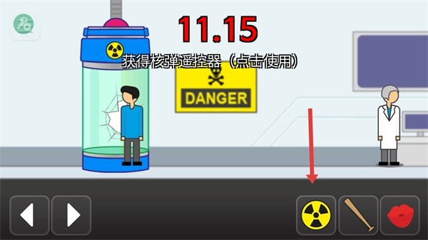 破坏容器后获得核弹遥控器,点击使用。