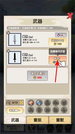 进入武器界面后,点击锻造选项,消耗相应材料即可对已有的武器进行升级;升级完成后,武器的攻击、耐久等属性都会有所提升,从而让角色在战斗中具备更强的压制能力。
