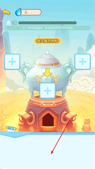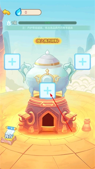 在炼丹界面找到丹炉旁的加号按钮并点击,然后放入炼制丹药需要的材料。
