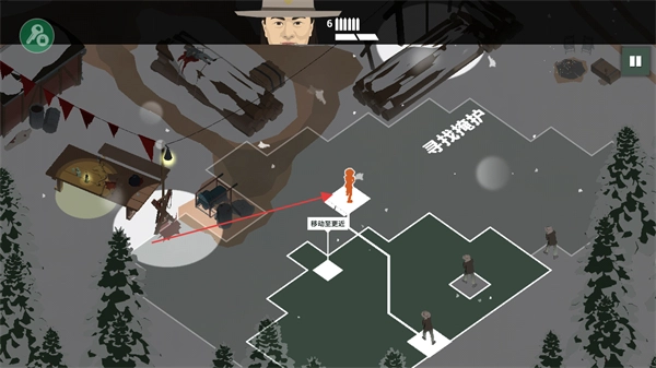 控制角色在地图里移动,依据寻找掩护的提示,前往安全区域避开潜在危险。