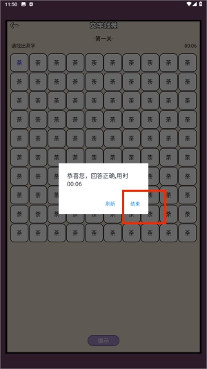 3、任务成功完成后,系统会自动展示本次所耗时长,并询问用户是否继续进行闯关。用户确认后,下一关卡的挑战内容便会解锁。