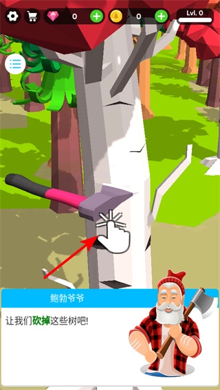 在游戏里,点击斧头图标就能砍伐树木,这可是获取资源的重要操作哦,砍伐的时候得一直点击树木,直到它倒下才行。