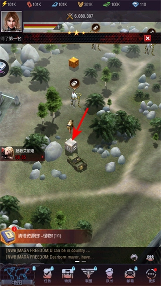 点击地图上的车辆等资源点,就能派遣部队去清理资源并获取收益,这是积累资源的关键策略,要留意资源点的类型和强度。