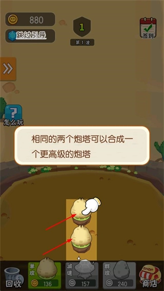 把两个一模一样的炮塔合在一起,就能得到一个等级更高的炮塔,通过这种方式来增强战斗能力。