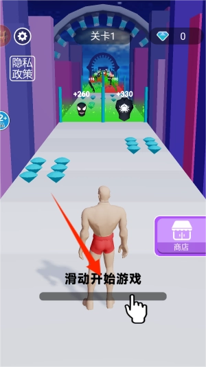 1、在屏幕上左右滑动就能开启游戏,角色会自动向前冲刺以应对挑战。