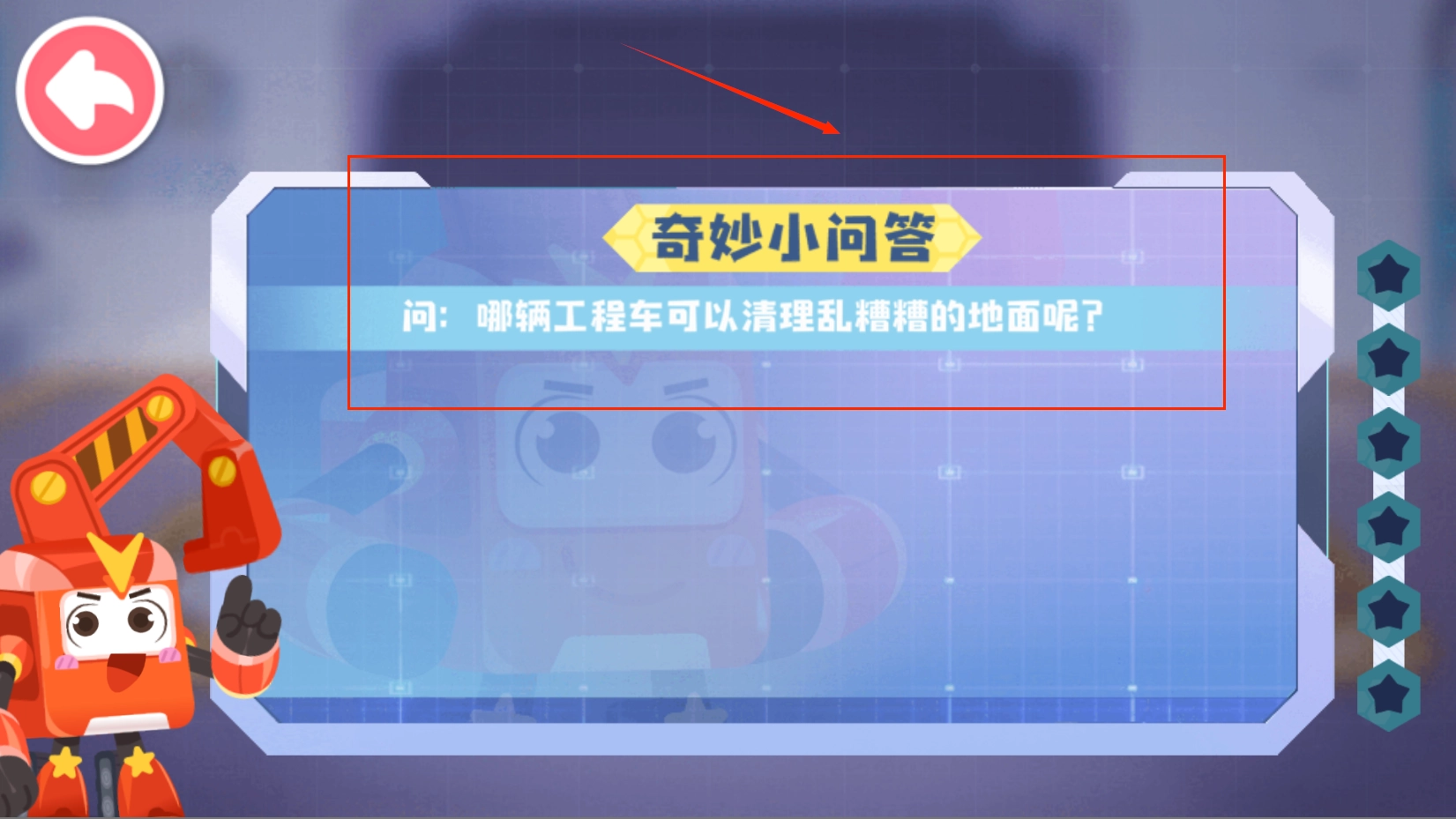 1、工程车辆认知系统,产品包含8种常见工程车辆操作体验。采用真实物理引擎模拟施工过程。每种车辆都有专属功能演示。难度设置符合3-6岁儿童操作水平。