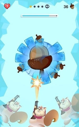 1、核心玩法是让玩家操控松鼠发射松果,通过触屏滑动来调整发射角度,松开手指即可发射松果,以此击落空中的目标坚果。