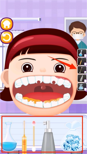 3、使用下方的工具为宝宝进行治疗,治疗结束后,右侧的工具图标旁会出现一个勾号标记。