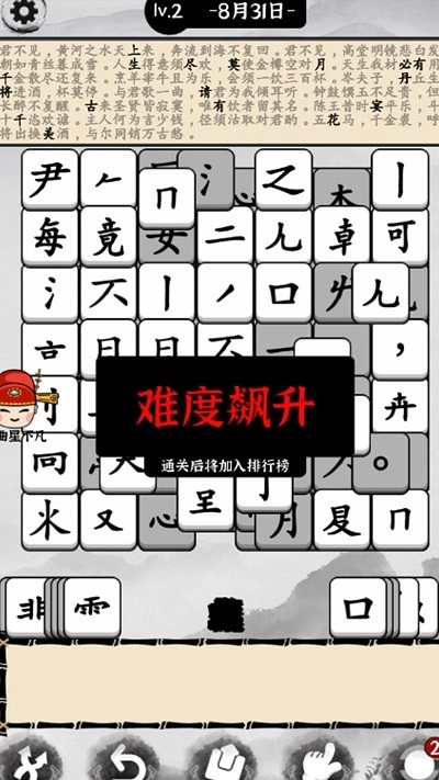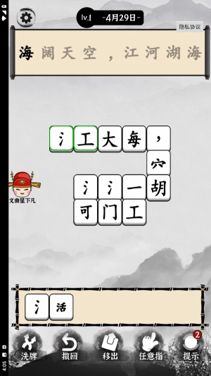 2、部分关卡需将散落的笔画组合成完整汉字,或根据提示拼出特定词语,兼具逻辑思维与语言能力训练。