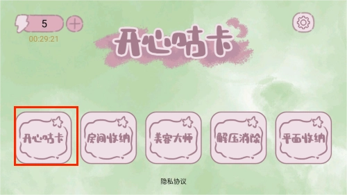 1、首先,登录游戏,有很多主题,可以选择:开心咕卡。