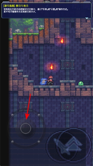 在游戏里,你可以借助左侧的虚拟摇杆来控制角色的移动方向——这可是在像素地牢世界里探索未知、避开敌人的核心基础操作,能帮你让角色稳稳地在各个平台之间跳跃穿梭。