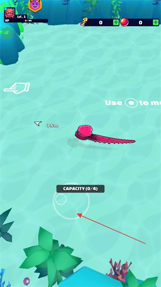 进入游戏后,玩家会变身为一只章鱼宝宝,只需滑动下方的空白区域,就能操控它移动。