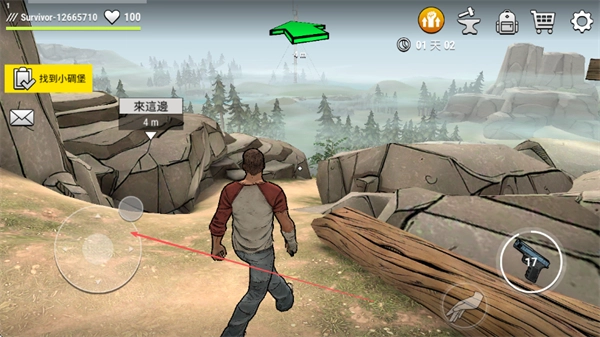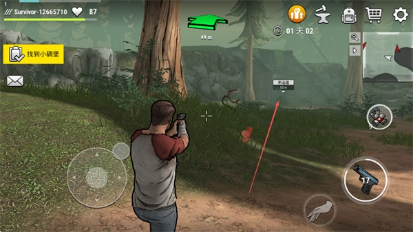 按照任务指引去寻找小碉堡,操控角色在野外进行移动,探索地图。